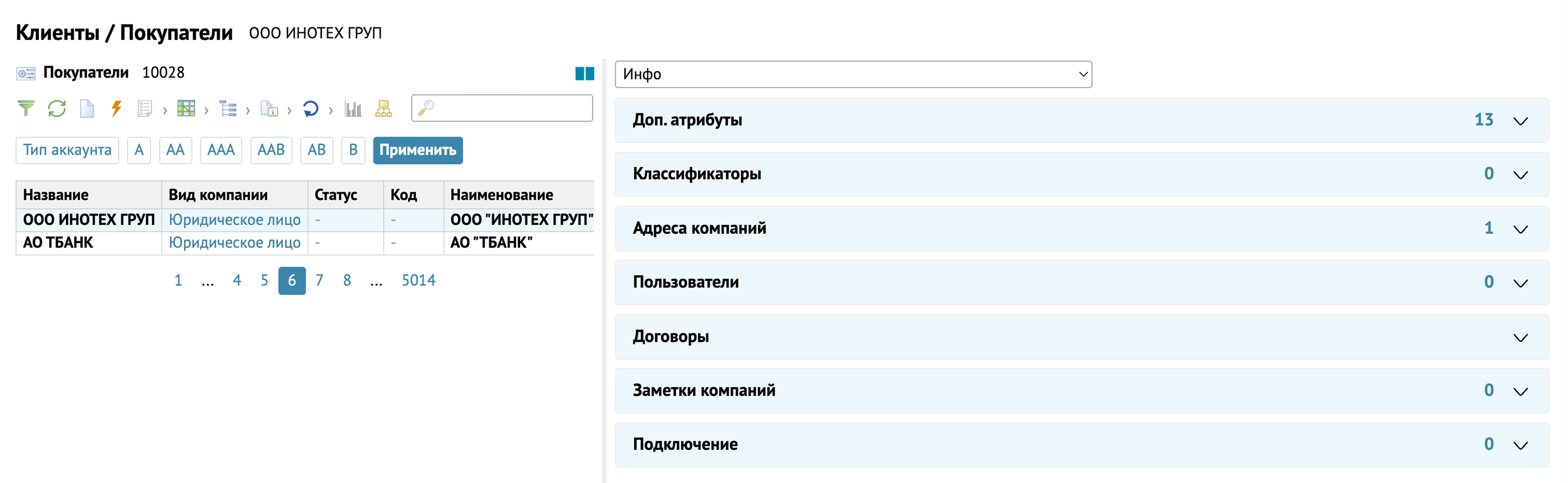 Для отображения конкретных столбцов в таблице необходимо нажать на кнопку Столбцы и выбрать нужные. Для удобства Атрибуты, Классификаторы и Адреса можно вывести отдельными столбцами в таблицу. Такие столбцы в наименовании заголовка столбца имеют * и **.