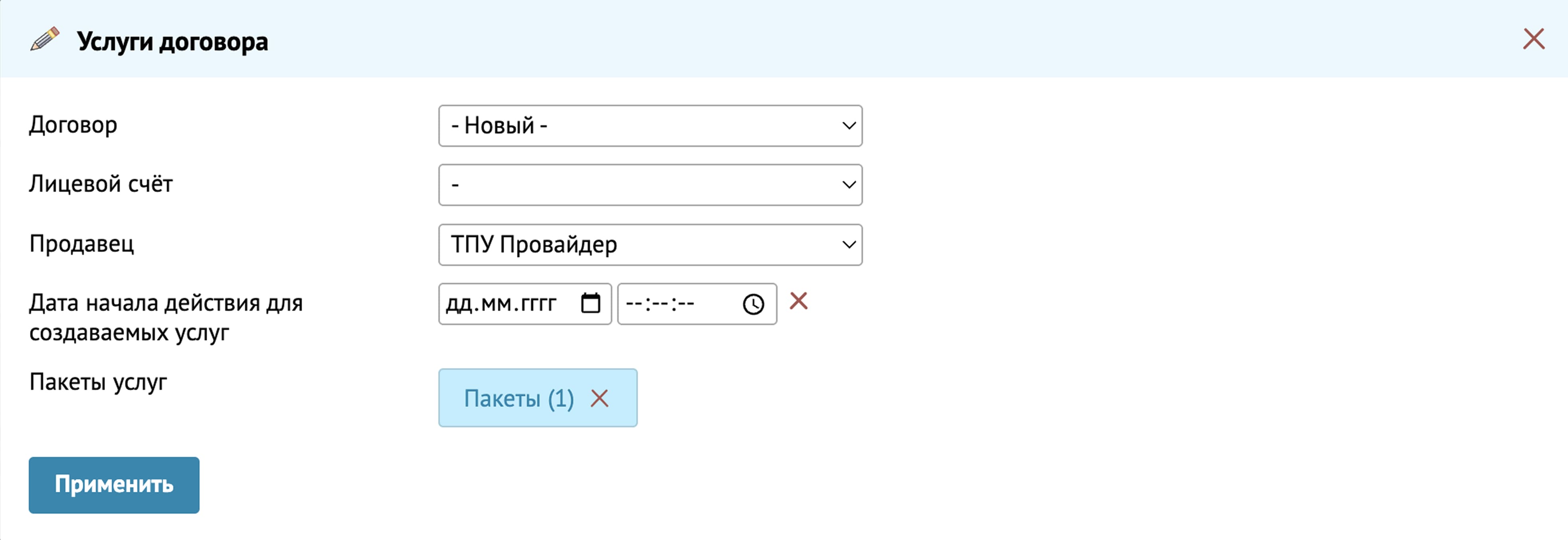 Предназначена для дублирования уже существующей услуги и добавления ее в другой договор.