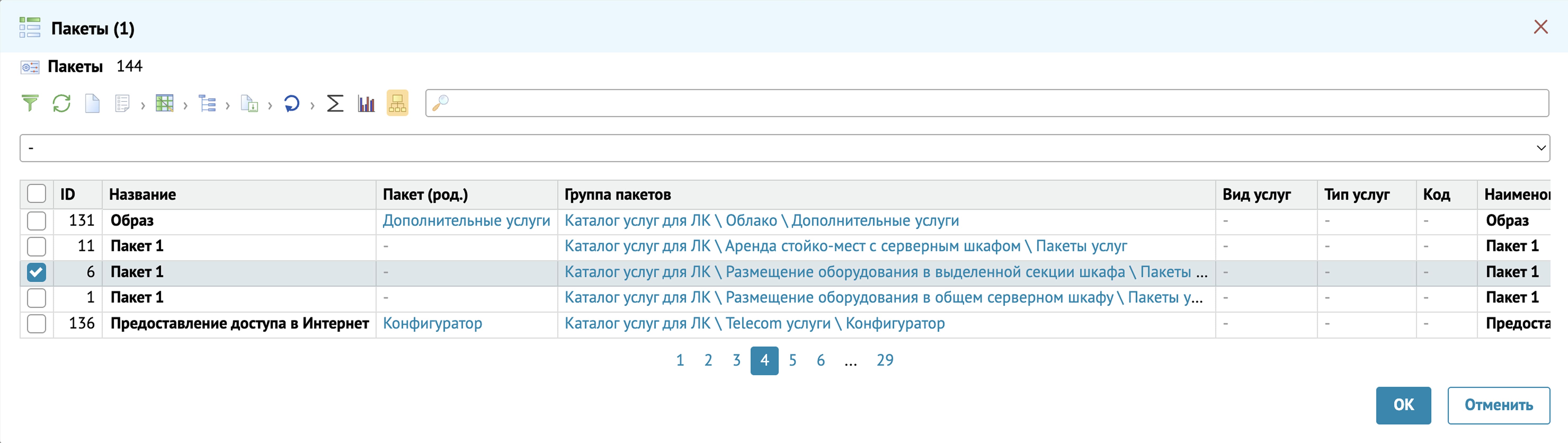 Также можно создать договор с пакетом услуг и связать его с Продавцом.