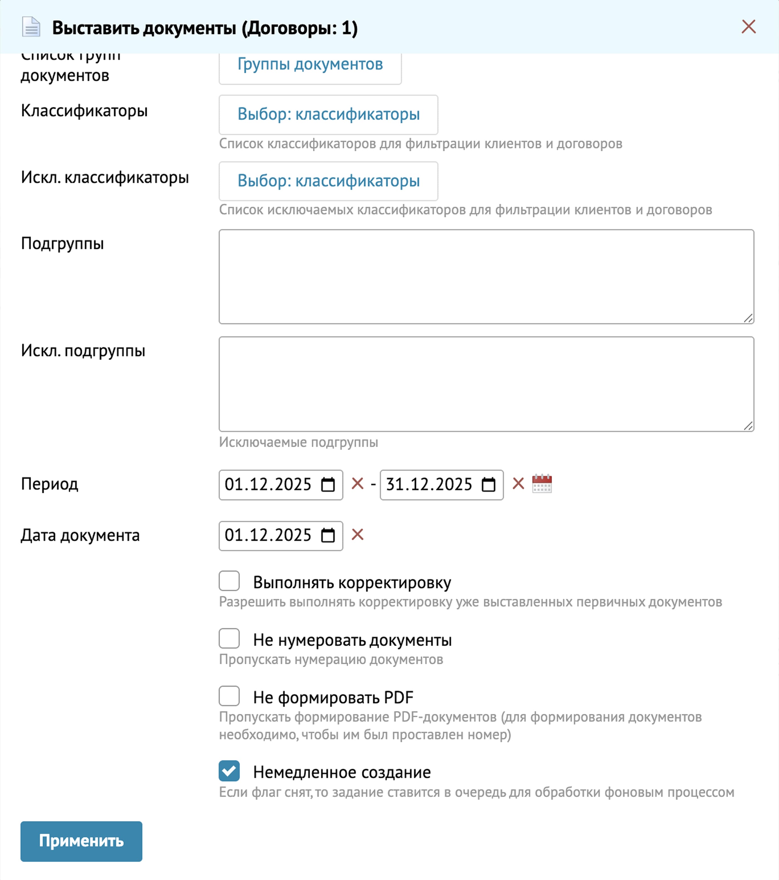 Шаг 3 - Вкладка Классификаторы. Выбираем группу клиентов.